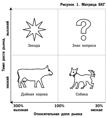Для оценки конкурентоспособности отдельных видов бизнеса используются два критерия: темп роста отраслевого рынка; относительная доля рынка. Темп роста рынка определяется как средневзвешенное значение темпов роста различных сегментов рынка, в которых действует предприятие, или принимается равным темпу роста валового национального продукта. Темпы роста отрасли 10% и более рассматриваются как высокие. Относительная доля рынка определяется делением доли рынка рассматриваемого бизнеса на долю рынка крупнейшего конкурента.