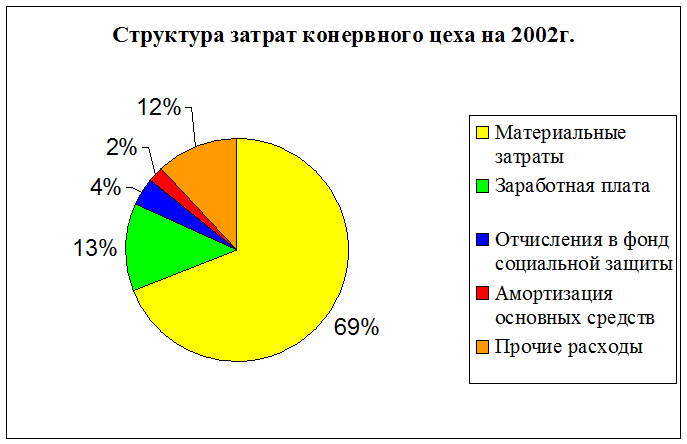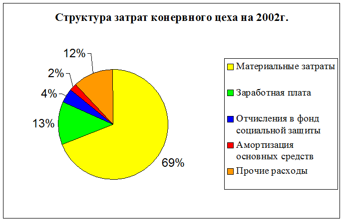 Несмотря на увеличение объема выпуска консервной продукции с 2001 г. по 2002 г. в два раза, затраты на производство увеличились только на 53%, что является положительной тенденцией. Анализ себестоимости консервной продукции показал следующее, в целом за 2002 г. рыбокомбинат уменьшил себестоимость консервной продукции на один миллион рублей по сравнению с 2001 г. или на 5,94%. Сокращение себестоимости произошло в результате снижения себестоимости единицы продукции в 2002 году. Рыбокомбинат в 2002 году сумел снизить себестоимость не только за счет внешнего (независимого) фактора цен на ресурсы, но и за счет более экономной, налаженной работы на предприятии, то есть внутренних факторов. В частности за счет снижения отходов, повышения производительности труда.