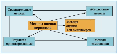 Существует 4 группы методов оценки персонала. Сравнительные методы подразумевают сравнение сотрудников между собой. Среди положительных сторон данной группы методов можно отметить их простоту в использовании. Они не требуют высокой квалификации менеджера. Отрицательным же фактором является высокая степень субъективизма, предвзятости: значительно чаще оцениваются личностные факторы, а не результаты работы и правильное для компании поведение. Абсолютные методы основаны на сравнении сотрудников с некими эталонами, прописанными факторами. Результат – ориентированные методы основаны исключительно на оценке результатов работы. Метод самооценки: сотрудник сам должен определить, в чем он был не эффективен. Механизм самооценки позволит сотруднику воспринимать критику и негативные результаты аттестации конструктивно, что существенно повысит качество его работы. На практике наилучший результат приносит интеграция различных методов оценки.