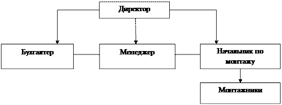 Линейная организация управления имеет место как правило на небольших предприятиях, где распределение задач управления ограничено наличием небольшого управленческого аппарата и производства, смотри схему 1.