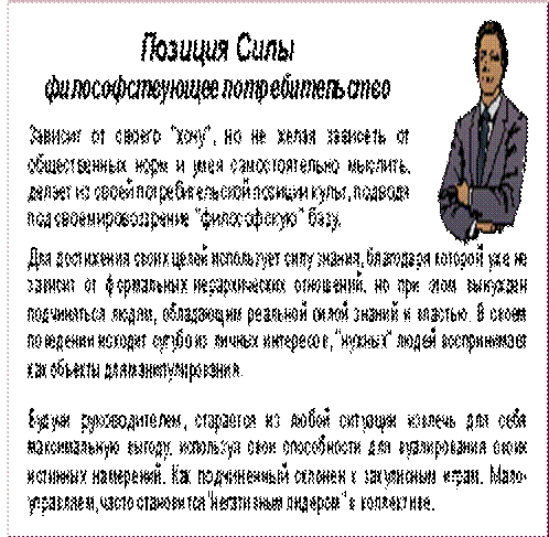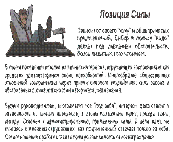 На рис.7 показаны особенности человека, занимающего Позицию Силы , применительно к сфере управления.