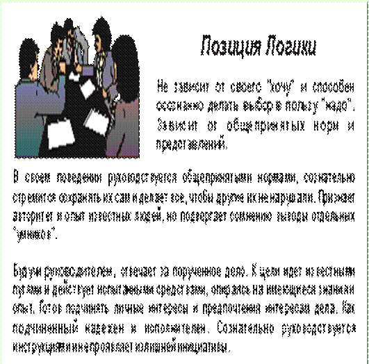 На рис. 8 показаны особенности человека, занимающего Позицию Логики , применительно к сфере управления. Из сказанного следует, что о способности к управлению можно говорить только в том случае, если человек имеет, как минимум, 1 степень свободы.