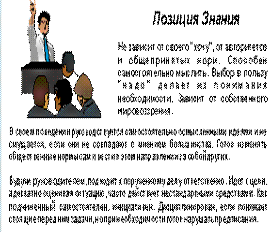 На рис. 9 показаны особенности человека, занимающего Позицию Знания, применительно к сфере управления.