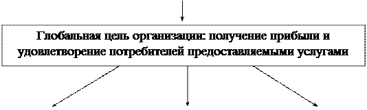 Цель организации — это конечное состояние или желаемый результат, которого стремится достичь трудовой коллектив. Чем больше целей ставит перед собой организация, тем она более сложна по структуре и управляемости. Цели всегда формируются на основе прогнозов. Чем более отдаленный период времени рассматривается, тем менее точен прогноз, тем в более общей форме ставятся цели. Однако цели должны быть конкретными и преодолимыми, быть достижимыми, а также взаимно поддерживать друг друга (быть согласованными между собой). На рис. 3 представлена стратегия организации.