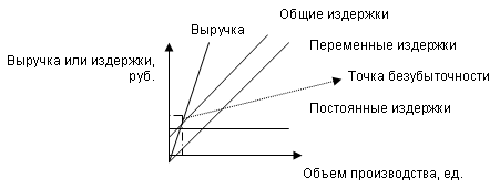 Под точкой безубыточности (критической точкой) понимается та точка объема продаж, в которой издержки равны выручке от реализации всей продукции, а прибыль, соответственно, — нулю.