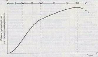 Четвертая стадия – стадия зрелости и стабилизации – характеризуется устойчивыми темпами наибольших объемов выпуска продукции и максимально возможной загрузкой производственных мощностей.