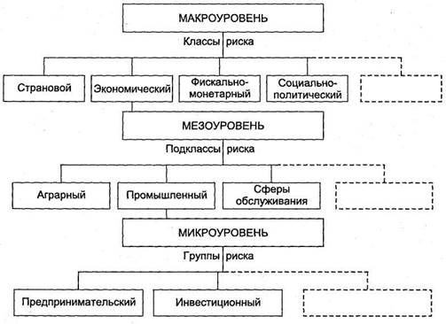 В зависимости от масштаба проявления факторов различают риски на макроуровне, мезоуровне и микроуровне (рисунок 1).