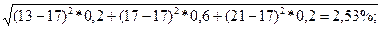 0,7 ∙ 0,3 + 0,55 ∙ 0,15 + 0,3 ∙ 0,2 + 0,28 ∙ 0,25 + 0,12 ∙ 0,1 = 0,4345, или 43,45%.