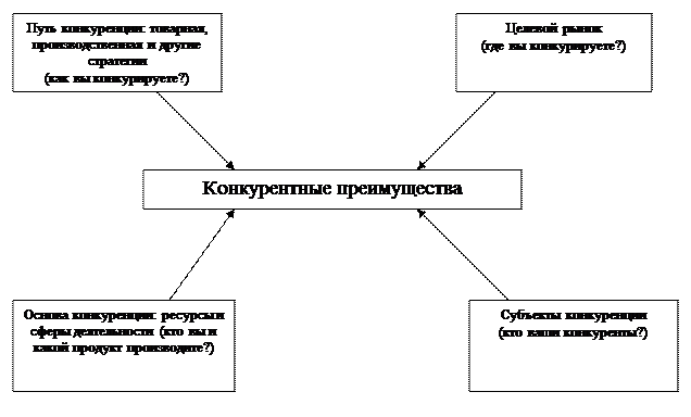 Как уже отмечалось, конкурентные преимущества создаются уни кальными осязаемыми и неосязаемыми активами, которыми владеет организация, а также теми стратегически важными для данного бизне са сферами деятельности, которые позволяют побеждать в конкурентной борьбе. Основой конкурентных преимуществ, таким образом, яв ляются уникальные активы предприятия либо особая компетентность в сферах деятельности, важных для данного бизнеса. Конкурентные преимущества, как правило, реализуются на уровне стратегических единиц бизнеса и составляют основу деловой стратегии организации.
