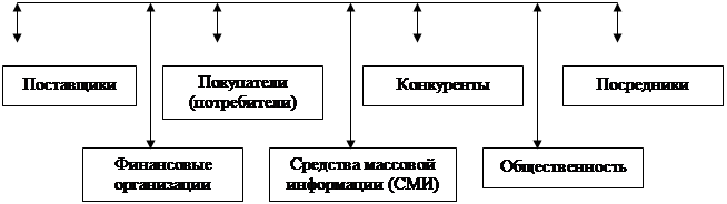 Рис. 1. Непосредственные составляющие внешней микросреды организации (обычно финансовые организации, СМИ и общественность называют контактными аудиториями) [3]