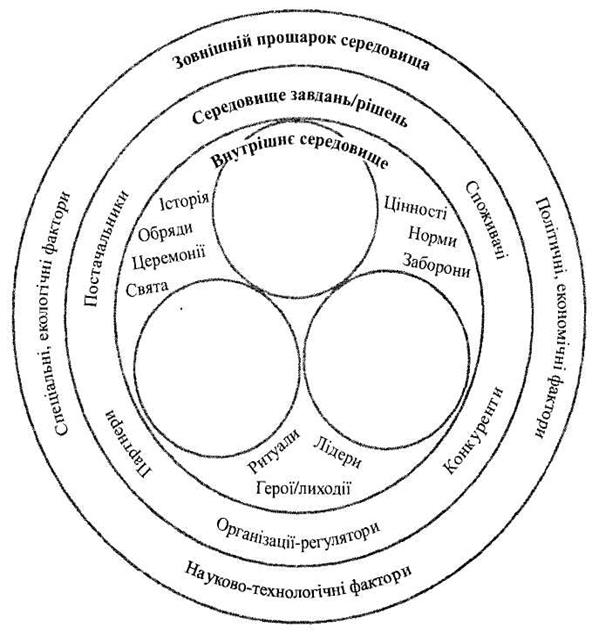 2. Среди иерархических концепций среды организации преобладают те, что различают внешнюю среду (или среда косвенного влияния); промежуточная среда (или «среда заданий»); внутренняя среда организации. Внешняя среда - это совокупность факторов, что формируют долгосрочную прибыльность (убыточность) организации и на которые она либо не может влиять вообще, либо имеет незначительное влияние. Промежуточная среда (или среда заданий) - это совокупность факторов, что формируют долгосрочную прибыльность (убыточность) организации и на которые она способна влиять через установление эффективных коммуникаций. Внутренняя среда организации - это совокупность факторов, которые формируют ее долгосрочную прибыльность (убыточность) и находятся под непосредственным контролем ее владельцев, руководителей и персонала.
