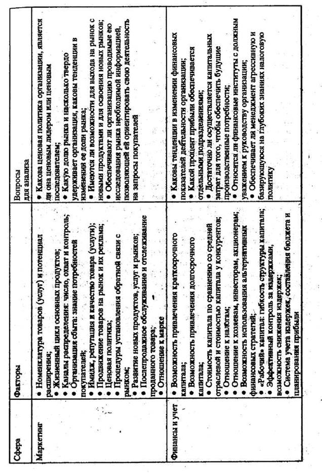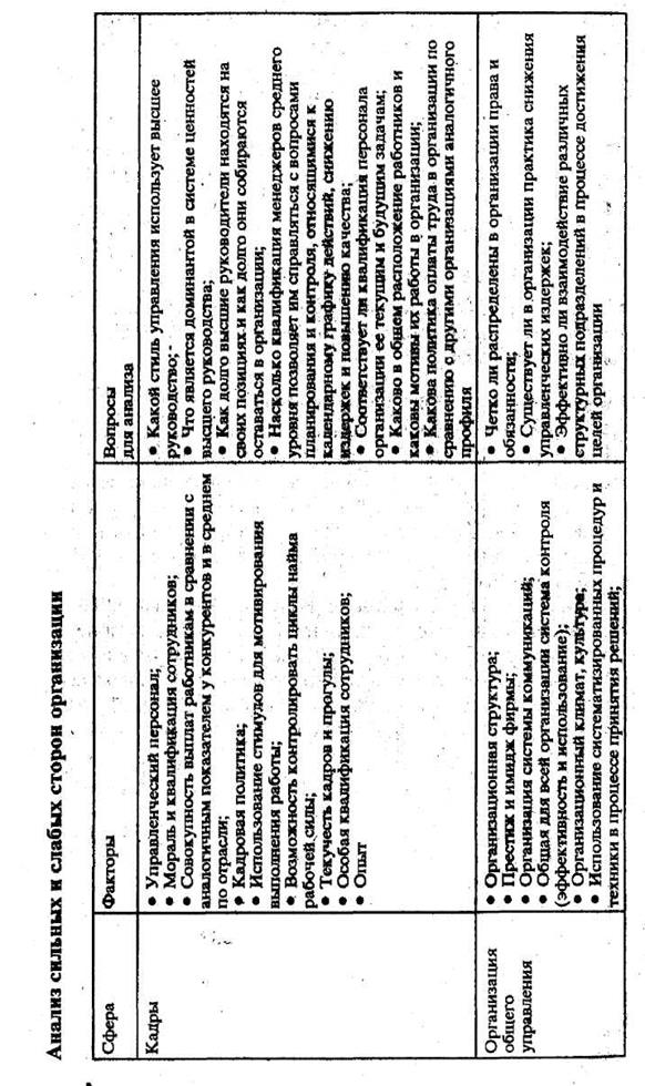 Организация может дополнить каждую из четырех частей списка теми характеристиками внешней и внутренней среды, которые отражают конкретную ситуацию, в которой она находится.