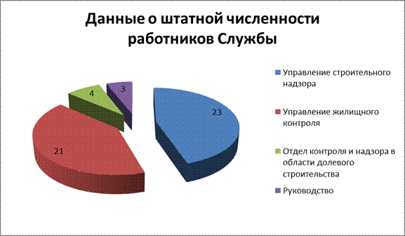 Согласно штатного расписания в управлении строительного надзора числится 23 сотрудника. В состав управления входят: