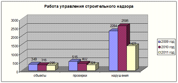 В сфере строительного надзора Службой за 1 полугодие 2011 года проверено 295 объектов капитального строительства, проведено 324 проверки (в I полугодии 2010 года - 402 проверки) строящихся объектов на территории Иркутской области, выявлено 1423 нарушения (в I полугодии 2010 года - 2595 нарушений) градостроительного законодательства.