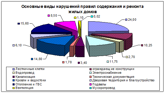 В ходе инспекторских проверок выявлено 2 949 нарушений ( в I полугодии 2010 года – 7 706) правил и норм технической эксплуатации жилищного фонда, правил пользования жилыми помещениями, в том числе: