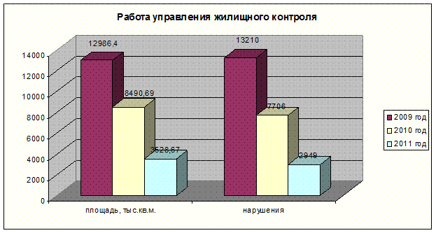 Управлением жилищного контроля за отчетный период выдано 375 заключений о необходимости проведения капитального ремонта жилого дома (в I полугодии 2010 года – 475). Выдано 60 актов обследования жилых домов для признания жилых помещений непригодными для проживания, многоквартирных домов аварийными и подлежащими сносу (в I полугодии 2010 года – 129).