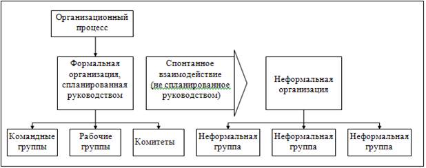 В формальной организации, несмотря на весьма детальную регламентацию ее деятельности, не все средства функционирования четко определены и далеко не все стороны функционирования формализованы. Инструкции не охватывают, да и не могут охватить всего, что происходит в организациях. Более того, попытки абсолютно все регламентировать зачастую приводят к снижению эффективности их работы. Причина состоит в том, что основным элементом всякой современной организации являются люди, в связи, с чем целесообразно рассматривать ее одновременно и как неформальное образование. Организация при таком подходе рассматривается как коллектив сотрудников, основным элементом которого выступают социальные группы: демографические, возрастные, национальные, профессионально квалификационные и другие, среди которых выделяются так называемые социально-психологические группы, регулирующие непроизводственные связи людей.