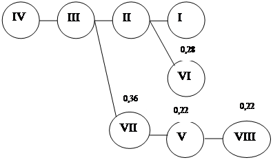 | VII | 0,28 | 0 | 0,36 | 0,1 | 0,22 | 0,28 | - | 0,2 |