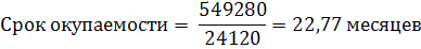 Предполагается, что приемлемый срок окупаемости проекта будет являться 1 год и 11 месяцев.