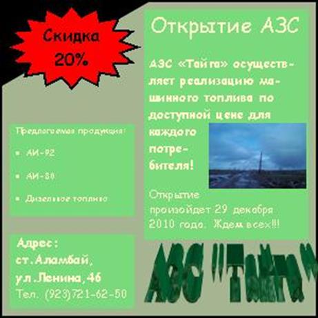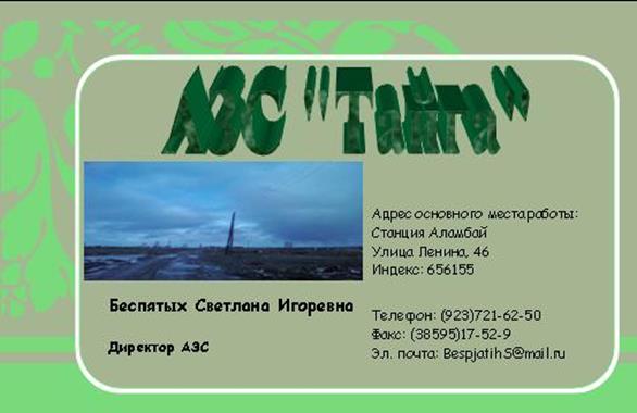 - достаточно высокая потребность в бензине и других товарах, реализуемых только нашим АЗС «Тайга» на станции Аламбай;