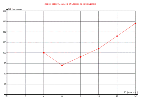 Увеличение производства свыше 6000 (шт.) приводит к уменьшению прибыли, т.е. фирма сама ухудшает своё положение. Закономерность этого явления можно проследить на примерах данных первых четырёх колонок таблицы 4.
