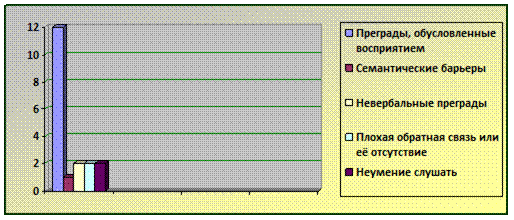 Но также были отмечены коммуникативные барьеры, связанные с неудовлетворительной структурой организации, мотивационные и невербальные преграды.