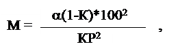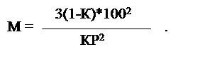 где М – объем выборки или число моментных наблюдений, К – приблизительный удельный вес затрат рабочего времени на выполнение изучаемой работы или приблизительный удельный вес времени работы оборудования в долях секунды (его величина берется по результатам ранее проведенных наблюдений или принимается ориентировочно на основе отчетных данных), (1-К) – удельный вес перерывов или простоев, т.е. вероятность застать рабочего или станок в бездействии, Р – заранее установленная точность результатов наблюдения, т.е. допустимая величина относительной ошибки результатов наблюдения (в практике изучения рабочего времени она берется в пределах 0,03 – 0,1), a - коэффициент, связанный с доверительной вероятностью невыхода ошибки Р за установленные пределы.