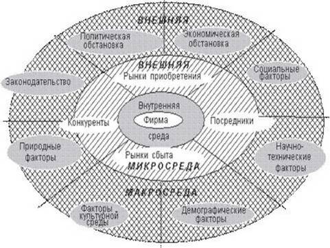Внешняя среда, в свою очередь, подразделяется на микросреду ( или рабочую, или непосредственное окружение, или среду прямого воздействия) и макросреду (или общую, или среду косвенного воздействия). Такое деление на сферы носит условный характер и конкретизируется отдельно для каждой организации[14].
