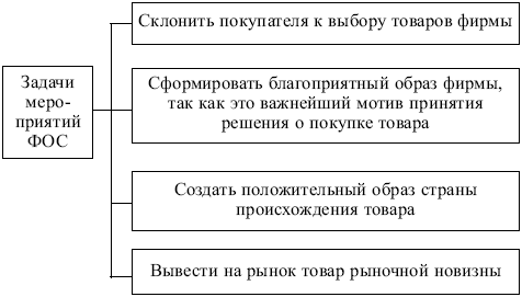 Убеждение покупателя в том, что приобретение именно данного товара выгодно и целесообразно, осуществляется различными методами: рекламными посланиями, предоставлением льгот, раздачей сувениров и т.д. Все эти средства называются коммуникационной политикой и известны в специальной литературе как средства ФОССТИС – формирования спроса и стимулирования сбыта. Для осуществления мероприятий ФОССТИС на внешнем рынке в структуре предприятия предусматривается специальная служба (отдел), функционирующая самостоятельно или привлекающая сторонние российские и иностранные организации, а также иностранных посредников предприятия за рубежом. Задача службы ФОССТИС – доведение информации о товаре и его потребительских свойствах до менеджеров. Каждый покупатель оказывается перед необходимостью выбора среди множества товаров того, который наилучшим образом соответствует его потребностям еще до приобретения товара. Мероприятия ФОС представляют информацию для принятия такого решения. К их числу относятся: рекламные послания; участие в выставках и ярмарках; бесплатная передача образцов во временное пользование или на испытание; публикация некоммерческих статей в отраслевых или иных журналах и т.д. Цельмероприятий формирования спроса – преодоление «барьера недоверия» покупателя к незнакомому товару, тем более если его предлагает незнакомая фирма, и последующее формирование у него положительного представления о товаре. Когда из неосведомленного покупатель становится осведомленным, а затем действующим, приобретающим товар, возникает имидж товара.