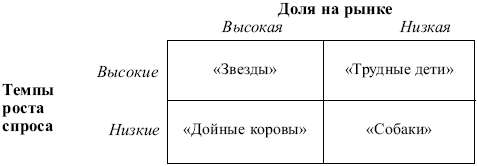 Матрица описывает ситуацию, требующую отдельного подхода с точки зрения капиталовложений и выработки маркетинговой стратегии. Возможные стратегии: «звезды» – сохранение лидерства; «дойные коровы» – получение максимальной прибыли; «трудные дети» – инвестирование, избирательное развитие; «собаки» – уход с рынка. Задача руководства предприятия – обеспечить стратегическое равновесие портфеля путем развития хозяйственных зон, способных давать свободные денежные средства, и зон, обеспечивающих долгосрочные стратегические интересы предприятия.
