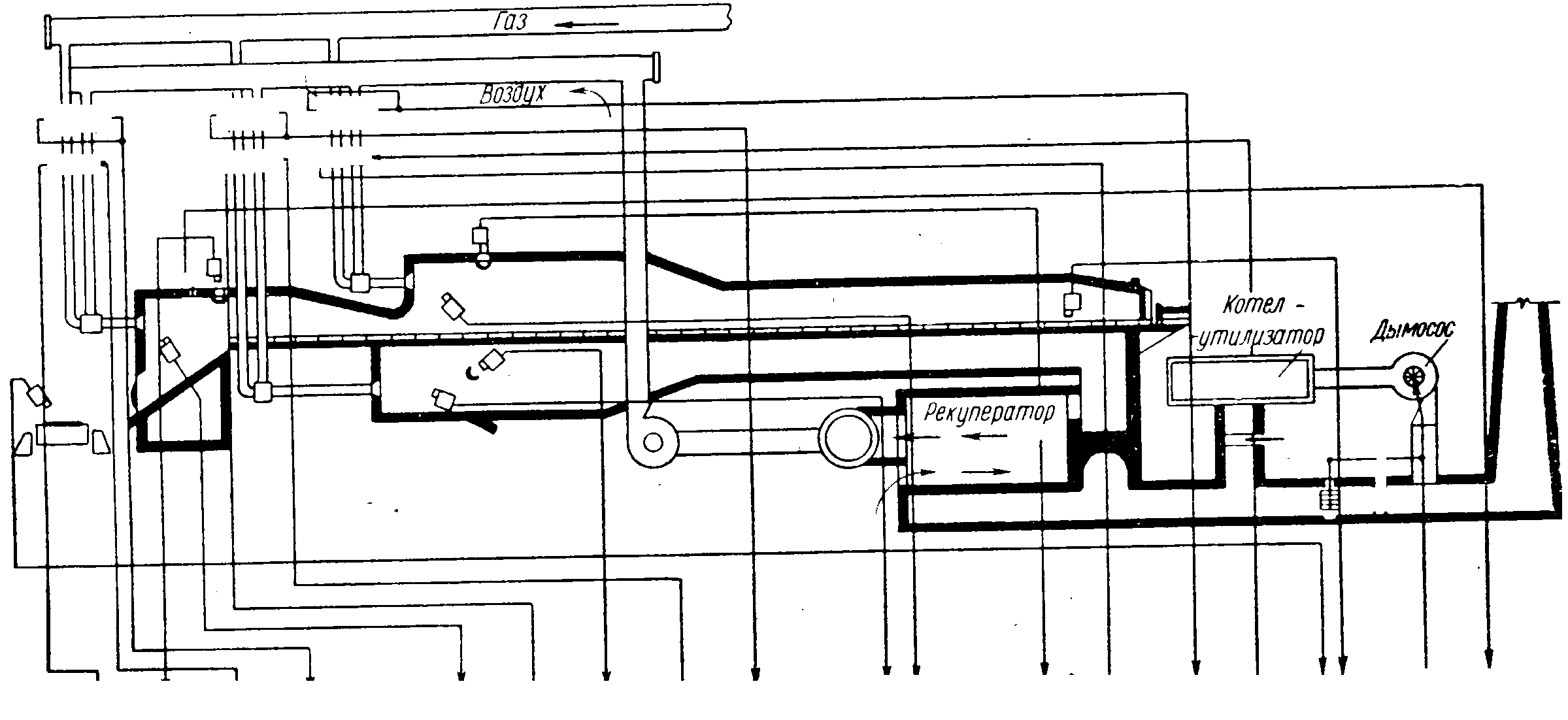 Температура нагрева металла зависит от марки металла и составляет для рядовых марок стали 1200—1250° С. Для более глубокой утилизации тепла на печах устанавливают рекуператоры: керамические и металлические — для подогрева воздуха, металлические — для подогрева низкокалорийного газа.
