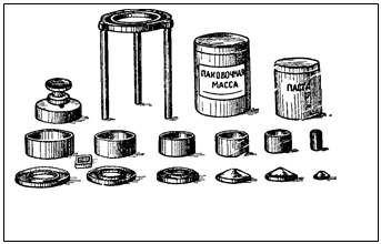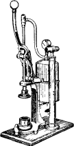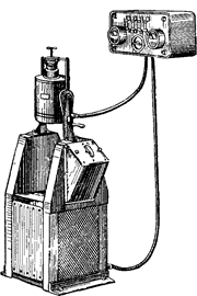 или мольдином металлическую крышку, прикрепленную к ручке аппарата, а кювету устанавливают на подставке под крышкой: когда металл расплавится, ручкой надавливают на крышку, которая закрывает всю поверхность кюветы. Повышение давления создается при испарении влажного асбеста или мольдина.