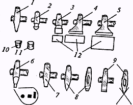Длина искры зависит от силы надавливания на вращающийся диск и, стало быть, добиться одинаковой длины искры можно, определив степень и равномерность надавливания и ее сохранять во время испытаний. Неравномерное давление образца на круг может дать искаженный результат. При образовании искры следует внимательно наблюдать за длиной искры, ее количеством, окраской и характером звездочек (рис. 31).