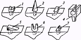 · При рубке металла зубило ставить только строго вертикально. Рубку производят только по краю наковальни, делая первый и последний удары слабыми. Отрубленный конец поковки следует направлять от себя и в безопасную сторону.