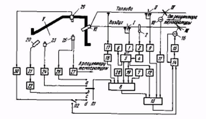 топлива температуру в области, контролируемой датчиком. На рис. 2 показана принципиальная схема локальной системы, позволяющей реализовать описанные выше способы управления режимом сжигания топлива.