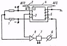 Измерение расхода воздуха выполняется с помощью диафрагмы/ и дифманометра 1 (ДМ-Э). Поправка к показаниям расходомера формируется с помощью ТП 2(ТХА-151), нормирующего преобразователя 3 (Ш-72) и блока нелинейного преобразования 4 (БНП). Вычисление расхода воздуха, приведенного к стандартным условиям, выполняется блоком умножения 5 (БВО), сигнализация достижения минимального расхода, еще обеспечивающего устойчивую работу горелок — блоком б (БСГ).