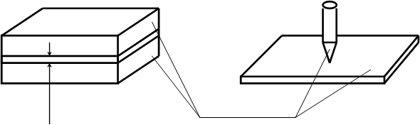 Наилучшие туннельные переходы с полупроводниковым барьером, получаются, когда барьер представляет собой монокристалл. Такие переходы реализованы не созданием барьера на сверхпроводящей пленке, а наоборот, нанесением пленки на обе стороны тонкой монокристаллической п/п мембраны из Si. Известно, что скорость травления монокристаллического Si перпендикулярно плоскости (100) в 16 раз больше чем в направлении плоскости (111). В результате этого в пластине Si, поверхность которого параллельна (100), при травлении небольшого, незащищенного фоторезистом участка, образуются ямки. Боковые стенки ямки образуют плоскости (111) под углом 54.7О к поверхности. Таким образом, размер дна ямки w1 , т.е. размер мембраны определяется соотношением , где w2 – размер открытого незащищенного участка поверхности, t – глубина ямки.