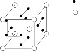 Тл, так и к изменению больших полей »1Тл. Соединение имеет такую решетку: атомы ниобия расположены в местах, занятых на рисунке и образуют со своими ближайшими соседями три цепочки, перпендикулярные друг – другу: