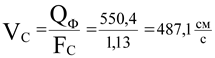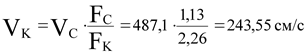максимально допустимое значение табл.4 [5] Vk max = 495 см/c. Следовательно, условие Vk ≤ Vk max соблюдается.
