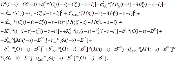 а0 , b0 , а1 , b1 – коэффициенты пересчета влияния изменения содержания примесей в стали на прогнозируемые и базовые значения эквивалентной окисленности (о) и угоревших масс (1);