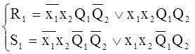 7. По таблице возбуждения памяти составляем логические функции сигналов на каждом информационном входе триггера.