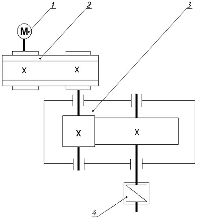 Привод складається з електродвигуна, муфти, відкритої ремінної передачі, одноступінчатого горизонтального циліндричного косозубого редуктора.