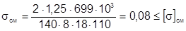 Матеріал полумуфт cталь 35, пальці виготовленні з нормалізованої cталі 45, втулки з спеціальної гуми з допустимою напругою зминання ![]()