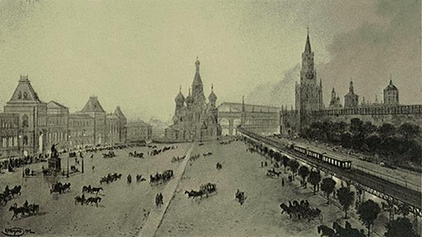 Наиболее интенсивное движение в Москве проходило от центра к Преображенской и Тверской заставам, Садовым бульварам и в Замоскворечье. Предполагалось соорудить диаметральную линию от строившейся в то время окружной железной дороги возле Петровско-Разумовского через центр к Красной площади и храму Василия Блаженного. Около него построить Центральный вокзал. Далее по эстакадам через Москву-реку к Большой Ордынке и Серпуховской заставе до соединения ее с окружной железной дорогой близ Павелецкого вокзала. Следующим этапом было сооружение двух кольцевых линий, проходящих по Садовым улицам и Замоскворечью, а также радиальной от Черкизова по реке Яузе до центра города.