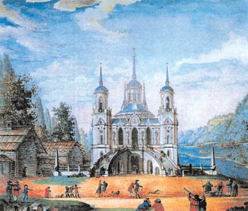 Да, Баженов тоже не чуждался криволинейных форм. Сохранился, в частности, выполненный им проект Малого Полуциркульного дворца Екатерины II в Царицыне с эллипсоидной залой (в наши дни его наконец-то достроили), собирался он и собственный дом возвести, где была овальная гостиная. Но храмов с овальной планировкой зодчий никогда не проектировал.