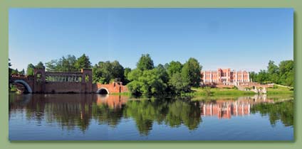 Перед дворцом вместо привычного парадного двора - огромный пруд, вокруг которого сгруппированы главные постройки усадьбы. Он усиливает эффект пространственности и увеличивает силу художественного впечатления.