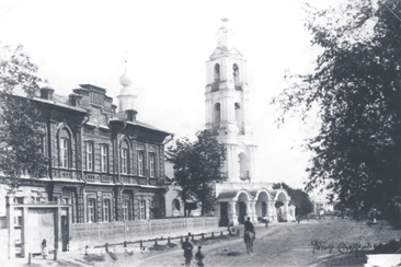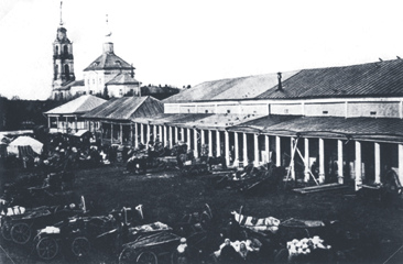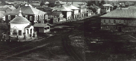 В начале XIX века исторический центр города выглядел следующим образом. За пределами «кремля» располагались две площади — Торговая и Сенная. От Сенной и расположенного на ней при Пятницкой церкви посадского кладбища отходила Мещанская улица. Отсюда же начиналась Костромская улица, за «извалом» (крутым подъемом) превращавшаяся в Костромской тракт. В 1833 году вместо сгоревшей деревянной церкви великомученицы Параскевы Пятницы была построена одноименная каменная часовня, имевшая «вид небольшой куполообразной ротонды с двухколонным корсиканским портиком перед входом, с фигурным восьмигранным завершением купола и восьмиконечным крестом на довольно крупном шаре»15. Принадлежала она соборной Благовещенской церкви16.