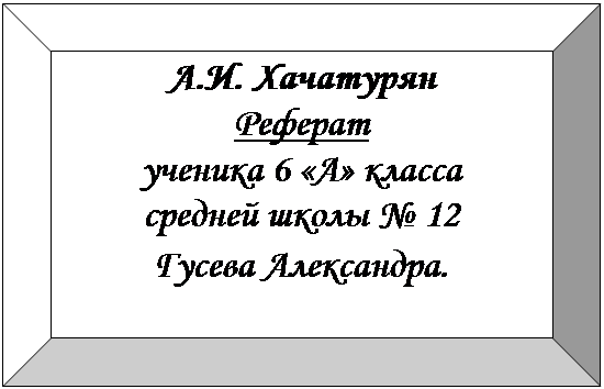 Арам Ильич Хачатурян – художник яркой, своеобразной индивидуальности. Темпераментная, жизнерадостная, привлекающая свежестью гармонии и оркестровых красок музыка его пронизана интонациями и ритмами народных песен и танцев Востока. Именно народное искусство явилось источником глубоко своеобразного творчества этого выдающегося композитора. В своих произведениях он также опирался на традиции мировой, и в первую очередь русской музыки.
