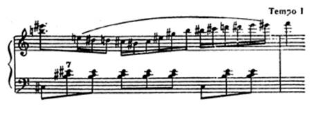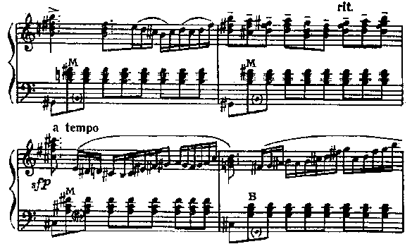 В первом случае a tempo выставлено после ritenute , которое подготавливает местную кульминацию. Поэтому здесь a tempo нельзя воспринимать как резко меняющийся темп, иначе окажется невыделенной последующая, более важная кульминация. Движение от a tempo к Tempo I разворачивается постепенно, а указания a tempo следует выполнить как accelerando al tempo I .