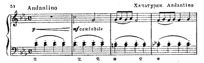 3. Совместно со студенткой находим «неблагополучные» по темпу отдельные фрагменты и, применяя методический приём сопоставления, «стыкуем» их с начальными тактами пьесы.